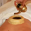 Continuous pouring of warm medicated oil, Medicated Takra or Kwath etc.